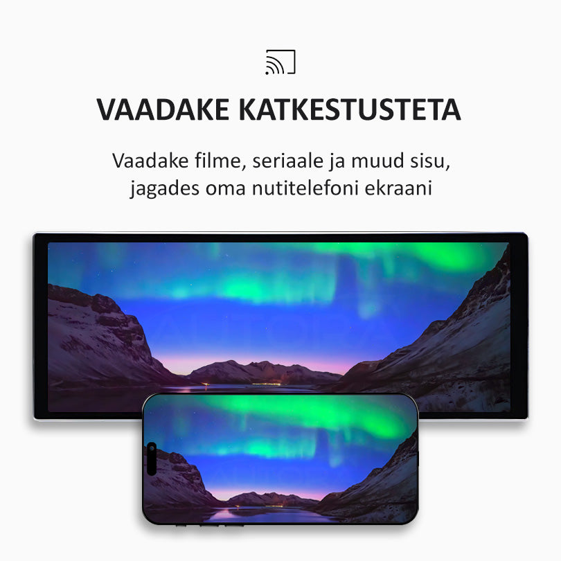 Saate oma telefoni ühendada juhtmevabalt Bluetoothi kaudu või kasutada kaablit, et tagada stabiilne ühendus ja samal ajal oma seadet laadida. Töötab kõigi nutitelefonidega.